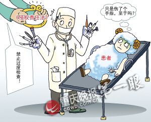“下月起,醫(yī)院再對患者進行過度檢查屬于違法!敝貞c合縱律師事務(wù)所徐桂鵬律師介紹,《侵權(quán)責(zé)任法》7月1日起正式施行,該法對過度檢查作了明確禁止性規(guī)定。