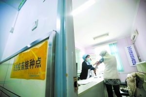月壇社區(qū)衛(wèi)生服務中心一樓預診臺前,時不時有人詢問甲型流感疫苗接種;醫(yī)院走廊的墻上,張貼著“甲流疫苗接種在三樓”的指示語;門前工作人員也一遍遍提醒著前來詢問的患者“要帶身份證”。雖然只是京籍居民免費接種甲流疫苗的第一天,又是工作日,不過截至10點30分,這里已有18名居民接受了疫苗接種。
