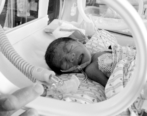 26日下午,記者在新生兒、兒科重癥監(jiān)護室見到了這四胞胎,四姐妹未脫生命危險,正在保溫箱里接受呼吸機吸氧,每個孩子都比正常孩子小很多,大概只有成人的兩個巴掌那么長,都張著大口,他們身上手上的儀器記錄著他們生命的軌跡,自從這四姐妹送到這里,醫(yī)生和護士便忙得不可開交。
