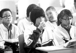 昨天下午2點(diǎn),朝陽區(qū)垂楊柳中學(xué)初中部,四間教室分別被臨時(shí)用做“候診室”、“接種室”、“處置室”和“觀察室”。初一年級(jí)的30名學(xué)生每人手里拿著一份經(jīng)家長(zhǎng)簽名的“甲流疫苗接種知情同意書”率先被帶進(jìn)了候診室。