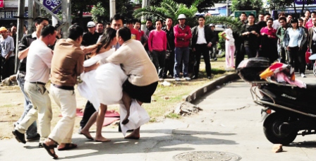 一女子赤裸著身子坐在電動車上,嘴里念叨著有人要掐死她,民警到場,她還不肯穿上衣服,抓了磚頭就要砸?guī)退┮碌娜。昨日中?2時許,在福州三八路與塔頭街交叉路口發(fā)生了一場裸女風(fēng)波。