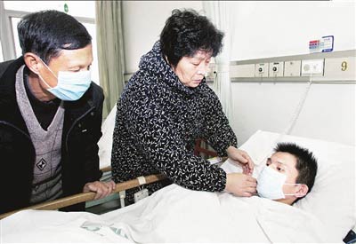 昨日上午9時(shí)許,在同濟(jì)醫(yī)院外科2號(hào)樓,窗外漫天飛雪,陳玉蓉母子所在的病房一片暖意:母親身穿亮綠色中式棉襖,氣色恢復(fù)如常,不時(shí)慈愛地看著一旁的兒子。
