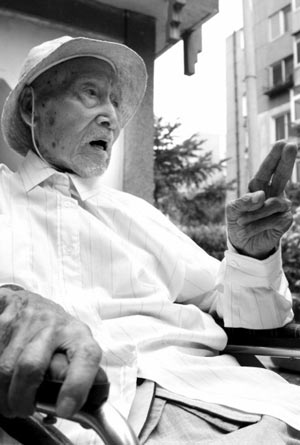 老人最喜歡吃的食品有牛奶、雞蛋、地瓜、香蕉、餃子、紅燒肉等。他從年輕時(shí)候起飯量就不大,從不暴飲暴食,現(xiàn)在每餐也只吃七八分飽,最喜歡的紅燒肉和餃子,也只吃五六口。社區(qū)醫(yī)院每月都來給老人檢查身體,老人各項(xiàng)指標(biāo)均正常,沒住過醫(yī)院,感冒發(fā)燒都極少。前幾天高溫,老人患了肺內(nèi)感染,也只打了3天吊瓶,多打一天他都不讓,而且堅(jiān)決不吃藥,他說“是藥三分毒”。老人滿口假牙,吃飯時(shí)飯菜必須軟爛;眼睛有些花,報(bào)紙上的大字還能看清;一只耳朵失聰,另一只耳朵有點(diǎn)背,跟他說話得大點(diǎn)兒聲。