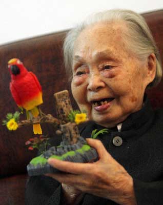 見到記者登門拜訪,老人笑呵呵站在門口招呼大家,一頭銀發(fā)收拾得整整齊齊,露出幾顆大牙,顯得十分可愛。走近老人的房間,既簡樸又整潔,一張床、一個書柜,床頭柜上擺放的一些兒童玩具讓這家屋子頓生童趣。老人的女兒李金秀拿著一個電動鸚鵡告訴記者,這是“六一”兒童節(jié)那天子女們送給老人的一份特殊禮物。鸚鵡能說會叫,老人每天都會拿出鸚鵡擺弄幾下,自己一個人樂個不停!袄闲±闲,一點不錯。老人童心未泯,愛上兒童玩具,真是越活越年輕了!”李金秀說。老人說,自己的長壽秘訣就是保持一顆童心。