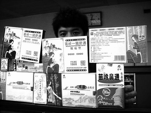 “我有鼻炎,常常鼻塞,有沒有什么好藥?”記者問!氨侨?”營業(yè)員從柜臺(tái)里面又取出一盒藥說,“你用苗嶺鼻通生態(tài)液吧,也是全中藥,效果特別好!