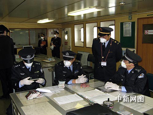 按照相關(guān)檢疫規(guī)定,此類船舶的船員在登陸之前,必須對(duì)其進(jìn)行二次檢疫。該輪?科陂g,外高橋邊檢站民警全程對(duì)其進(jìn)行了提口監(jiān)護(hù),以隨時(shí)注意掌握該輪人員上下情況,嚴(yán)防甲型H1N1流感病毒傳入境內(nèi)。