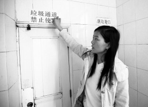 在李嬌的指引下,記者來到事發(fā)現場,此時,“肇事”的垃圾通道門上已經重新上了鎖,并掛上“垃圾通道禁止使用”的警示標語。“這是出事后醫(yī)院設置的!崩顙沙鍪玖耸掳l(fā)當時拍下的照片,“醫(yī)院的做法實則已經承認過錯,但就是不肯和我們協商賠償!