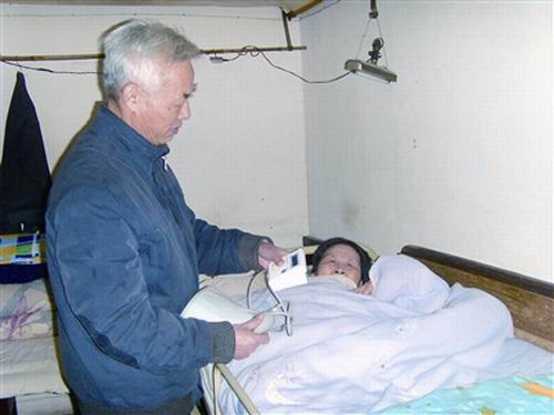 洗澡也是個難題。夏天,為徐春芳洗澡時,張望生就將特意買來的一大塊膠布,靠床沿一截垂下來,洗澡時水就沿著膠布落到洗澡盆中。而到了冬天,張望生就干脆每天幫她擦身子。