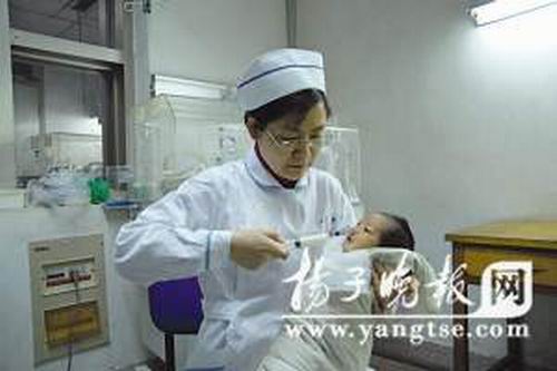 4日上午,記者來到儀征市人民醫(yī)院婦產(chǎn)科,只見朱汝成護(hù)士長正在用針管小心翼翼地給“小牛娃”喂奶。由于小家伙鼻腔和口腔相通,不能自己喝奶,每次只能用針管,還要小心謹(jǐn)慎,生怕嗆著孩子。記者注意到,“小牛娃”用依戀的眼神看著護(hù)士長,朱護(hù)士長說,每次看見小孩子的眼神,心里特別難過,自己也是母親,知道這么個(gè)小生命實(shí)在太脆弱了,F(xiàn)在自己照顧他,就把他當(dāng)成自己的孩子,孩子是無辜的,他也是一個(gè)小生命!靶∨M蕖背酝昴毯螅熳o(hù)士長又把他放進(jìn)幼兒床里,因?yàn)榕滦〖一镏鴽,辦公室的空調(diào)始終開著,從正月初三起,婦產(chǎn)科全體醫(yī)護(hù)人員輪流照顧孩子,并給孩子購買奶粉、衣服、尿不濕等必需品。