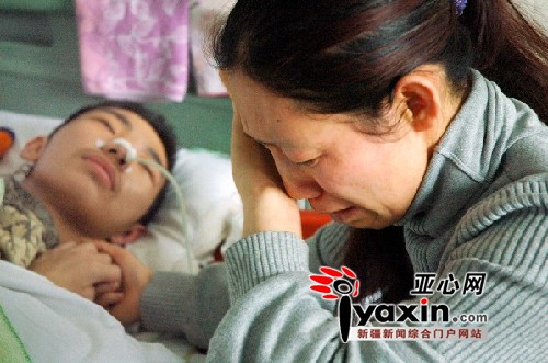 “洋洋,要堅強,只要挺住一切都會好起來……”2月16日,在新疆維吾爾自治區(qū)人民醫(yī)院,聽著兒子范洋洋痛苦的呻吟聲,焦玉麗拉著他的手一遍遍地給他鼓勵。