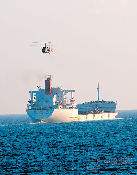 在亞丁灣東部海域,“振華13”號、“振華14”號、“宇善”號、“SAGAHORIZON”號相繼離開護(hù)航編隊(duì),朝不同航向駛?cè)ァV袊_灣商船“宇善”號船長王傳龍給護(hù)航編隊(duì)打電話說:“感謝你們的護(hù)航,祝你們護(hù)航行動順利!”