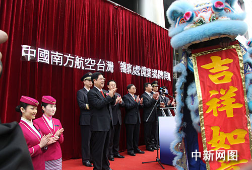 1月15日,大陸南方航空公司在臺(tái)北正式成立辦事處,成為首家在臺(tái)灣掛牌運(yùn)營(yíng)的大陸企業(yè)。圖為開業(yè)揭幕儀式典禮。中新社記者 陳立宇 攝