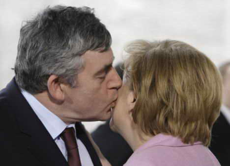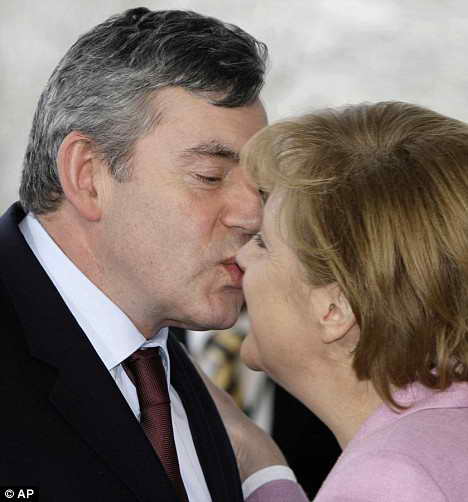 布朗親吻默克爾時笨手笨腳 誤撞鼻子(組圖)(2)