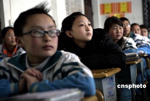 3月13日,借校于拉薩第三小學(xué)的拉薩二中學(xué)生正在專(zhuān)心聽(tīng)課,同學(xué)們已經(jīng)從去年“3.14”事件的陰影中走出。去年“3.14”打砸搶燒事件時(shí)拉薩二中被暴徒嚴(yán)重沖擊,初一初二的兩所教學(xué)樓被全部燒毀,F(xiàn)在借校于拉薩第三小學(xué)上課的共有7個(gè)班級(jí)300多名學(xué)生。中新社發(fā) 劉震 攝