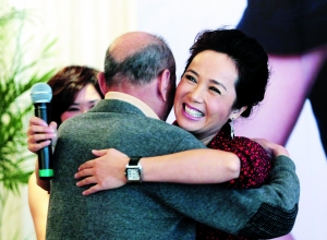 蔣雯麗本月雙喜臨門(mén),剛憑借《立春》獲得金雞影后,其導(dǎo)演處女作《我們天上見(jiàn)》又在韓國(guó)釜山電影節(jié)上榮膺“最受觀眾喜愛(ài)電影大獎(jiǎng)”。雙獎(jiǎng)在手的蔣雯麗昨日偕《我們天上見(jiàn)》的主演朱旭等在京慶功,可惜慶功宴上丈夫顧長(zhǎng)衛(wèi)姍姍來(lái)遲,活動(dòng)已經(jīng)結(jié)束了才出現(xiàn),連話(huà)都沒(méi)來(lái)得及說(shuō)上一句。