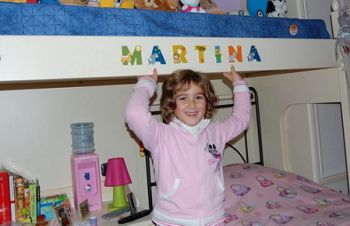 2009年10月25日,我剛剛走進意大利維泰博市圣瑪利亞小學(xué),一個稚嫩的聲音就在我的耳邊響起:“你好,你是中國人嗎?我叫馬爾蒂娜,我會用中文數(shù)數(shù)!币粋有著金色頭發(fā)、甜美笑臉、肉嘟嘟的的小女孩不待我回答,就已經(jīng)開始數(shù)了:“一,二,三……”那雙有著長長睫毛的大眼睛明亮而熱情,撲騰撲騰地眨著。她就是馬爾蒂娜,那次采訪中唯一主動和我打招呼的女孩。當時她一邊數(shù)著數(shù),一邊還用中國特有的手勢比劃著:“八……我有手槍,八,八……哈哈!”
