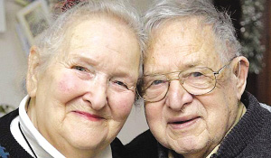 英國漢普郡滑鐵盧維爾市84歲老翁約翰·比尤沃辛和81歲妻子瑪格麗特盡管都已年過8旬,但他們?nèi)韵?0年前剛剛結(jié)婚時那樣恩愛甜蜜。