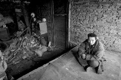 金福榮家在姚家屯的最南面,兩間舊瓦房?jī)?nèi)每晚要擠6口人,其中一間15平方米左右的屋內(nèi)住著金福榮的父母、妹妹、妹夫和外甥,另外一間同樣大小的房子金福榮自己住了近16年。