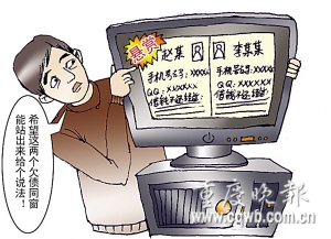 在帖子中,馬將兩名欠債同窗的生活相片、真實名字、籍貫、手機號碼、QQ號都公之于眾,并公布了對方借錢不還的詳細經(jīng)過。馬以“愿負法律責任”,來保證帖子中的內(nèi)容的真實性。他說:如果欠債者看見帖子后,告自己侵犯名譽權,自己賠錢也不后悔發(fā)帖。