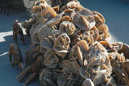 突尼斯有“沙漠玫瑰”的美譽,在突尼斯、阿爾及利亞、摩洛哥等北非國家,還有另一種“沙漠玫瑰”,非常有名。不久前,記者去突尼斯采風(fēng),看到了這種從沙漠里面挖出的沙漠玫瑰石,因為它的形狀很像盛開的玫瑰花,所以得名。