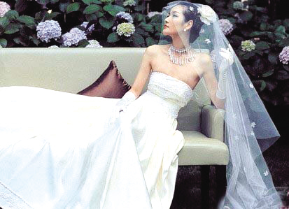 象征著純潔的白色是婚禮上最適宜的色彩,裙長(zhǎng)過(guò)腳踝的長(zhǎng)度更是經(jīng)典婚紗的代表。端莊大方的妝容搭配優(yōu)雅的傳統(tǒng)梳髻包頭和傳統(tǒng)發(fā)飾就是高貴正式的新娘裝扮了。