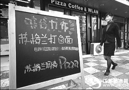 偶然在成賢街一家西餐廳門口看到,木制廣告牌上寫著醒目的“蘇格蘭打鹵面、蘇格蘭調(diào)情pizza”。餐廳老板稱,“蘇格蘭打鹵面”是年后新推出的餐品,78元一份,選材多為進口原料,總有一樣和蘇格蘭有關(guān)。至于鹵子要不要錢,這事老板保密,他拍胸脯保證,這面鹵不咸。
