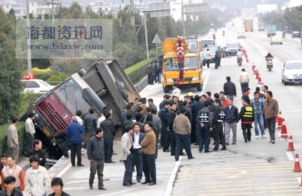 昨天下午4時(shí)19分,324國(guó)道59公里+200米處(福清上逕段),一部車牌號(hào)為“閩A75427”的大型運(yùn)沙車由福州往廈門方向行駛中,與停在同向的一輛客車刮碰后,撞向路邊的一輛人力三輪車,造成三輪車上的一家5口2死2傷。當(dāng)時(shí),六旬的奶奶騎著三輪車,接回剛放學(xué)不久的4名孫輩,其中三人是十幾歲的小女孩,還有一人就是6歲的小彬。