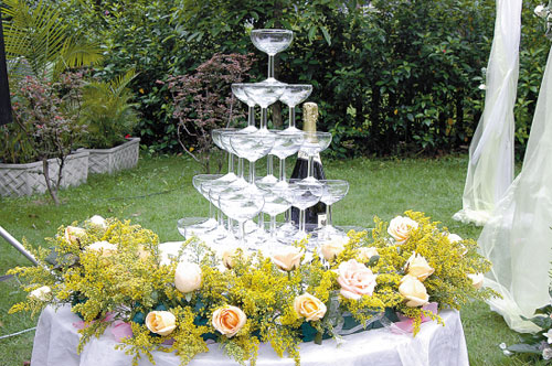 觀禮場旁邊,例牌要準(zhǔn)備一些簡單的餐點(diǎn)供親友們享用。至于浪漫的泡泡機(jī)、現(xiàn)場演奏的小樂隊(duì),就可以視乎新人們的需要來添加或者忽略。
