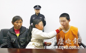 因為與人結伙搶劫,昨日上午10時50分,15歲少年王言在渝中區(qū)法院少年法庭受審。王言11歲的妹妹從100多公里外的老家趕到法院,給哥哥送來兩顆糖。