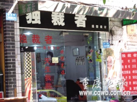 來(lái)自渝中區(qū)七星崗 “理發(fā)店叫‘獨(dú)裁者’,讓人心頭很不舒服!弊蛉,家住七星崗的陳小姐致電本報(bào),覺(jué)得此舉有些不妥。