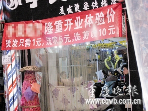 近日,渝北龍溪街道電子校附近一家新開的理發(fā)店打出廣告,到該店?duì)C發(fā)只需1元。如此“好事”,是真的嗎?