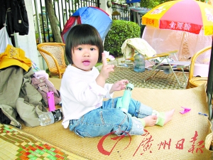 梁女士說,為了兩歲半的小女兒能夠順利入讀,她早早就來到幼兒園門外,扎起小帳篷,開始了長(zhǎng)達(dá)7天的守候,現(xiàn)在已經(jīng)守了5天了。雖然很辛苦,但梁女士認(rèn)為,只要為了孩子,付出都是值得的。梁女士還告訴記者,她碰到一位“80后”的媽媽說,“只要孩子能上好學(xué)校,別說一星期,我就是排一個(gè)月隊(duì)也值了!