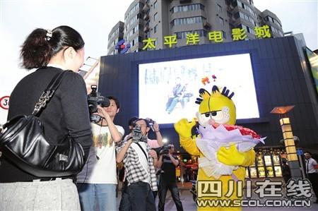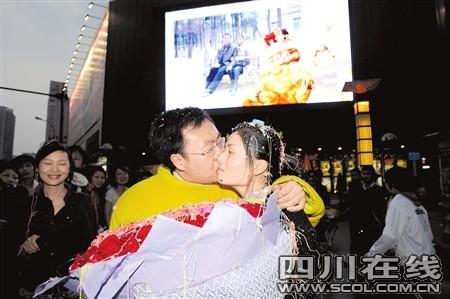 昨晚7點(diǎn),應(yīng)男友的邀請,鄭小姐來到成都春熙路商圈的青年路太平洋影城準(zhǔn)備和男友一起看電影。剛走到影城門口,鄭小姐突然發(fā)現(xiàn):影城門口的大屏幕上,居然正在播放由自己和男友平時照片所組成的短片。沒等鄭小姐回過神來,身穿加菲貓?jiān)煨头b的男友周先生已捧著大束玫瑰走上前來,單膝跪地:“嫁給我吧。”