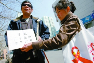 昨日上午9時許,在豐臺區(qū)第二幼兒園門口,一戴墨鏡、拄拐杖的盲人男子舉著“尋找兒子張陽”的牌子。男子自稱叫張進(jìn)亮,安徽人。據(jù)他介紹,2006年初,其與女友王秀梅因感情問題通過法院解除了同居關(guān)系,兒子張陽由王秀梅撫養(yǎng),此后,他再沒見過張陽,但一直能聯(lián)系上王秀梅。直到今年春節(jié),王的手機(jī)換了號碼,從此,他與兒子也失去了聯(lián)系。因?yàn)橥跣忝氛f過在豐臺區(qū)生活,所以他堅(jiān)信兒子在豐臺的幼兒園就讀。張進(jìn)亮說,此前他已經(jīng)找了10多家幼兒園,但一直沒有張陽的消息。
