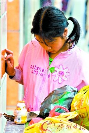 據(jù)村民講,這個(gè)小女孩的生活挺有規(guī)律的,她一般早上撿垃圾,下午看書,黃昏賣垃圾,晚上則到網(wǎng)吧樓梯口睡覺。