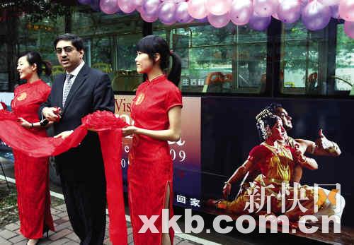 作為“2009印度旅游年”活動的一部分,由印度旅游局及印度駐廣州總領(lǐng)事館共同主辦、以“不可思議的印度”為主題的車身廣告推廣活動昨天在廣州正式啟動。印度駐廣州總領(lǐng)事班浩然(左二)出席活動。