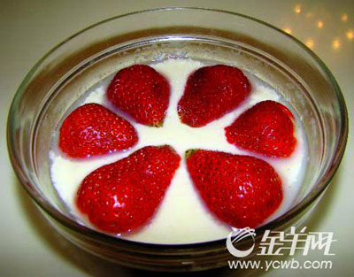 奶燉蛋清。比做雙皮奶簡單得多,又不會出現姜撞奶的失敗,因為姜撞奶還需要掌握好牛奶的溫度;c心思,放上草莓,或者其它水果,紅豆等等,總之隨心所欲。