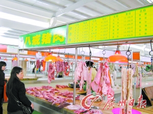 接到讀者報料后,記者昨天上午,來到大良府又菜市場與現(xiàn)代街市兩個市場進行調(diào)查。在府又菜市場記者一眼看到標有“八戒豬肉”牌子的豬肉檔,20多市民正在排隊等購。該檔的男檔主說,他的檔口每天可賣出2頭中等重的生豬。
