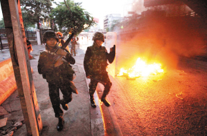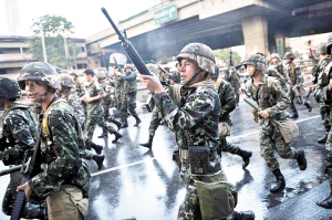 據(jù)新華社電泰國軍隊(duì)13日在首都曼谷持續(xù)采取行動(dòng),驅(qū)散反獨(dú)裁民主聯(lián)盟(反獨(dú)聯(lián))“紅衫軍”成員,奪回大部分“紅衫軍”先前占據(jù)的地點(diǎn)。除總理府前的“紅衫軍”集會(huì)大本營(yíng)外,軍隊(duì)基本控制了曼谷其他區(qū)域。沖突導(dǎo)致大約70人受傷,現(xiàn)階段沒有人員死亡的報(bào)道。