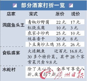 “最近上酒樓吃飯便宜了。”家住海珠區(qū)的李小姐告訴記者,下渡路的渝風(fēng)樓,原先賣38元的酸菜魚、跳水蛙都降到18元,經(jīng)常看到幾個年輕人就圍著兩大盤這樣的菜式,再叫個飯就可以完成一餐,很劃算。