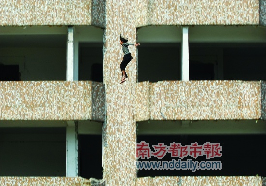 “我們一起跳吧”,當(dāng)端坐在莞城可園南路一棟6層拆遷樓頂?shù)呐诱f完這話后,雙手張開,縱身跳下。時間仿佛定格在昨日上午9點(diǎn)43分。幾秒鐘后落在充氣墊的女子微微抬了抬腳,現(xiàn)場有人喊出“她還活著”。