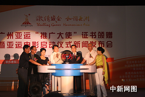 中新網(wǎng)6月2日電 6月1日,第16屆廣州亞運會“友好推廣大使 ”證書頒贈儀式暨亞運電影新聞發(fā)布會在北京釣魚臺賓館舉行。國際著名影星成龍正式成為“亞運推廣大使”,同時,2010年廣州亞運電影項目正式啟動。
