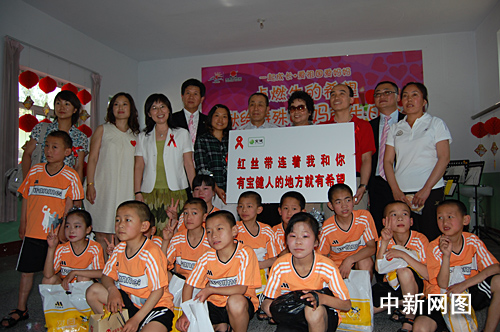 中新網(wǎng)6月3日電 5月30日,我國(guó)艾滋病宣傳大使、臨汾紅絲帶學(xué)校名譽(yù)校長(zhǎng)、著名演員濮存昕和青年歌手李丹陽(yáng)、中國(guó)青少年發(fā)展基金會(huì)副秘書(shū)長(zhǎng)汪敏、寶健(中國(guó))日用品有限公司副總裁蔡尚榮、寶健山西臨汾的代理商們等一行走進(jìn)山西臨汾“綠色港灣”,為紅絲帶小學(xué)的艾滋病患兒們送去了節(jié)日的禮物和溫馨的祝福。
