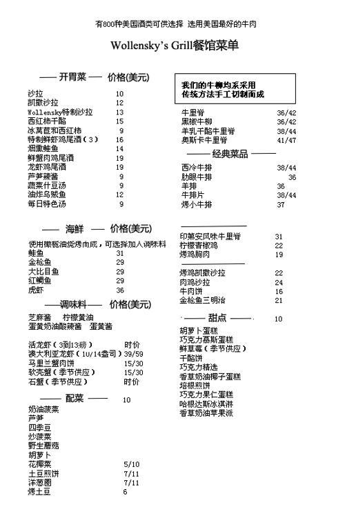 根據(jù)Smith&Wollensky牛排連鎖店網(wǎng)站的資料,這家餐廳每道菜在30~60美元之間,最貴的一款菜是14盎司的澳大利亞龍蝦,價值59美元。對于211萬美元的成交價格,Smith&Wollensky顯得很驚訝,他們稱“相對競拍的天價,這頓午餐花費只是個零頭!