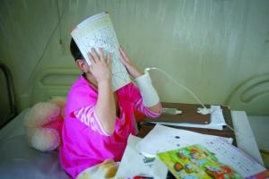 丹丹見到鏡頭馬上用書將臉遮擋起來。5歲女童丹丹被確診為急性重型再生障礙性貧血,入住北京道培醫(yī)院準(zhǔn)備骨髓移植。到昨日為止,她的父母已經(jīng)“消失”9天了。本報(bào)記者 吳江 攝