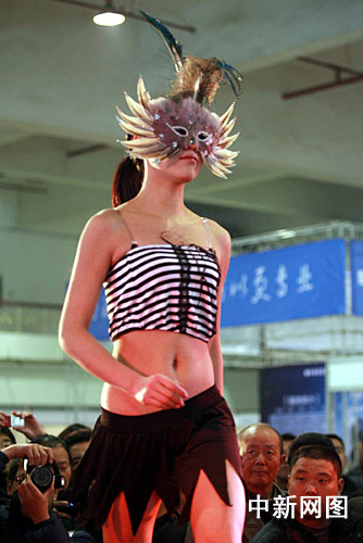 然鄭州室外地上還有厚厚的積雪沒有融化,但情趣內(nèi)衣展的T形臺(tái)上卻是活力四射。10多名女性情趣內(nèi)衣模特在人們的歡呼聲中閃亮登場(chǎng)。模特們身著各式生趣內(nèi)衣登臺(tái),閃亮燈光下,大膽地秀出迷人的內(nèi)衣和輕紗隱藏下的曼妙身材。
