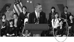 不久前,奧巴馬剛剛結(jié)束訪華,此行不僅讓奧巴馬成為各大媒體關注的焦點,同時也使一位神秘女子成為網(wǎng)絡紅人。11月16日在上?萍拣^會場,出現(xiàn)在奧巴馬身后的一名黑衣女子被攝入媒體鏡頭中,其亮麗的外形、獨特的氣質(zhì)吸引了眾多網(wǎng)民的眼球,網(wǎng)友迅速展開對女孩的“人肉搜索”。范冰冰親戚?楊瀾侄女?或者又是一場炒作?種種未經(jīng)確定的猜測充斥著各大論壇,也為黑衣女孩的身份蒙上了一層神秘的面紗。
