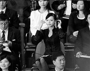 11月16日13時,對中國進行國事訪問的美國總統(tǒng)奧巴馬走進上?萍拣^會場,與中國青年展開對話。但是和奧巴馬的演講相比,現(xiàn)場攝影記者對一名黑衣女子表現(xiàn)出了更大的興趣。這名美女在現(xiàn)場脫掉紅色外套露出黑色套裝的全過程被記者用相機記錄下來,被制作成GIF動畫上傳網(wǎng)絡,隨后這組動畫在網(wǎng)上論壇以及QQ群里廣泛傳播,隨后又有網(wǎng)友將奧巴馬演講視頻中有關該女子的片段截圖上傳,黑衣美女的美貌和氣質(zhì)迅速傾倒眾人。