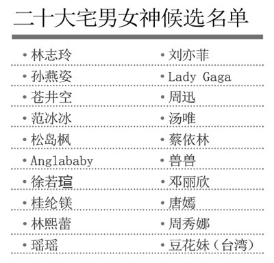 盡職的實習(xí)生同學(xué)們經(jīng)過幾個星期來的摸底調(diào)查,得出20大候選名單,其中,有大家熟悉的志玲姐姐、蒼井空老師,也有令人有些意外的孫燕姿、周迅同學(xué),詳見20大候選名單。