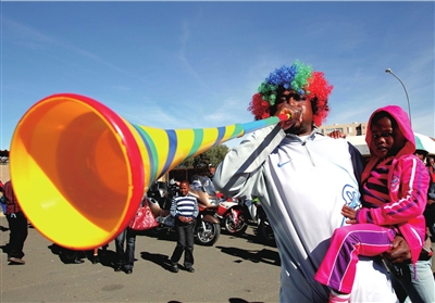 在本屆世界杯上,一種叫做“喔喔祖拉”的非洲傳統(tǒng)喇叭被全世界球迷所熟知,這個(gè)東西發(fā)出的類似于蜜蜂叫的響聲也引起了爭(zhēng)議。日前,“喔喔祖拉”已開始在淘寶網(wǎng)上熱賣。對(duì)于此物應(yīng)不應(yīng)該出現(xiàn)在本地綠茵場(chǎng)觀眾席上,北京國(guó)安的球迷反應(yīng)不一。